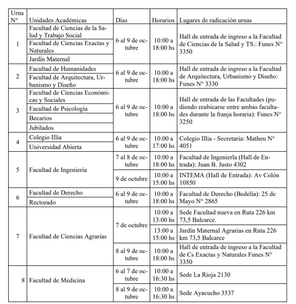 - Esta Mesa se abrirá del 7 al 8 de octubre con HORARIO de 10 a 18 hs en el Hall de entrada de la Facultad,