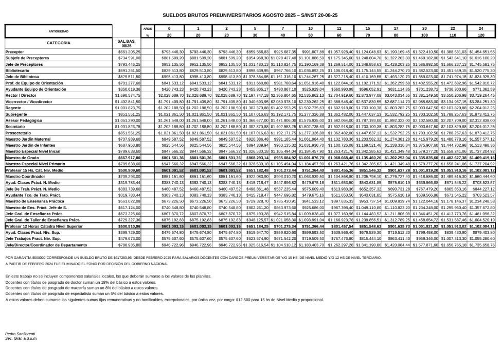 En los archivos adjuntos encontrarán lo que llamamos “haber de agosto”, que serían los valores actuales de los salarios. (No confundir con lo que se cobra, sino es que el salario actual es decir sin los retroactivos).