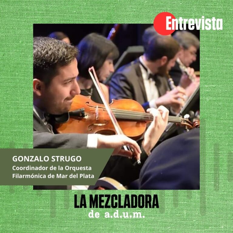 Conversamos con Abigail Araujo, secretaria gremial de Adum; Micaela D’Ambra, secretaria general adjunta de CICOP y Gonzalo Strugo Rosenstein, coordinador general y concertino de la Orquesta Filarmónica de Mar del Plata.